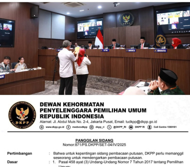 “Benar, sesuai dengan Surat Panggilan yang kami terima hari ini, sidang pembacaan Putusan DKPP akan dilaksanakan di Ruang Sidang DKPP Jakarta, pada Senin 14 April 2025 sekira pukul 10:00 WIB,” Kata Kuasa Hukum Pengadu Muhammad Rifai Manik saat dikonfirmasi Jum’at (11/04/2025).