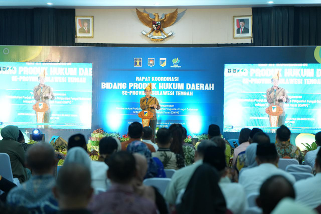 PALU – Menteri Hukum Republik Indonesia, Supratman Andi Agtas, menghadiri Rapat Koordinasi Bidang Produk Hukum Daerah se-Sulawesi Tengah. Kehadiran Menteri Supratman, yang juga merupakan putra daerah Sulawesi Tengah, disambut langsung oleh Gubernur Sulawesi Tengah, Anwar Hafid, yang menyebut momentum ini sebagai “kepulangan ke kampung sendiri” dan sebuah kehormatan besar bagi Pemerintah Provinsi, Jumat (21/11/2025) di Gedung Pogombo Kantor Gubernur Sulteng.