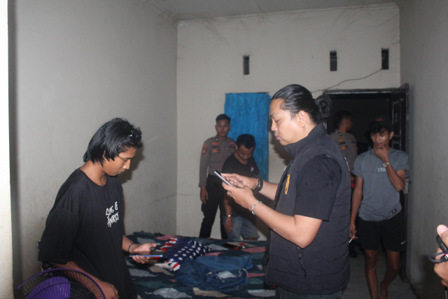 Dalam pelaksanaan razia, petugas melakukan pemeriksaan identitas terhadap para tamu yang berada di lokasi.