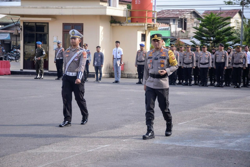 Kapolres Langsa AKBP Andy Rahmansyah SIK, SH, MH selaku Inspektur upacara membacakan Amanat Kapolda Aceh bahwa keselamatan berlalulintas di jalan raya sangat memperhatinkan.