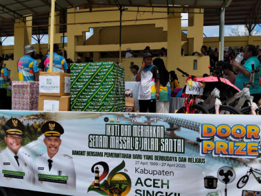 ACEH SINGKIL – Dalam rangka menyongsong Hari Jadi ke-26 Kabupaten Aceh Singkil, Pemerintah Kabupaten menggelar kegiatan jalan santai yang diikuti oleh ratusan peserta, Sabtu (19/4/2025).