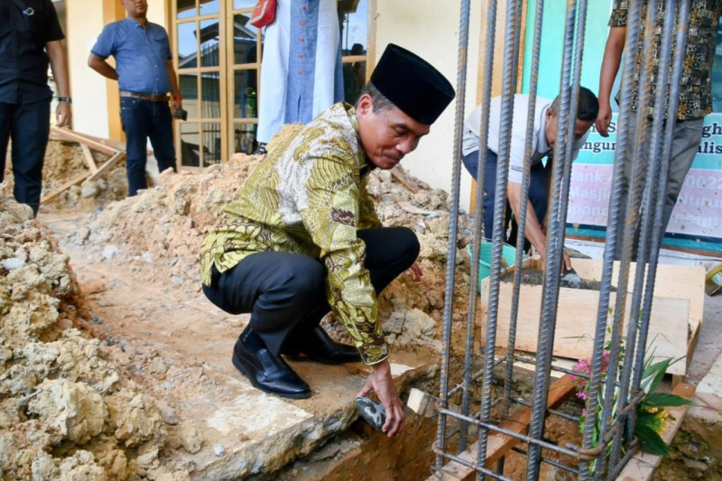 KOTA LANGSA – Pj Walikota Langsa Syaridin melaksanakan peletakan batu pertama renovasi mesjid besar Nurul Qur’an di Gampong Alue Pineung Timue, kecamatan Langsa Timur, Kamis (13/06/24).