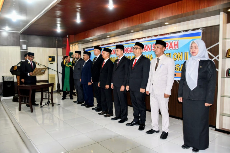 KOTA LANGSA – Pj Walikota Langsa Syaridin, S.Pd., M.Pd melantik dan mengambil sumpah 8 pejabat Pratama (eselon II) di lingkungan Pemko Langsa, Jum’at 14/06/24