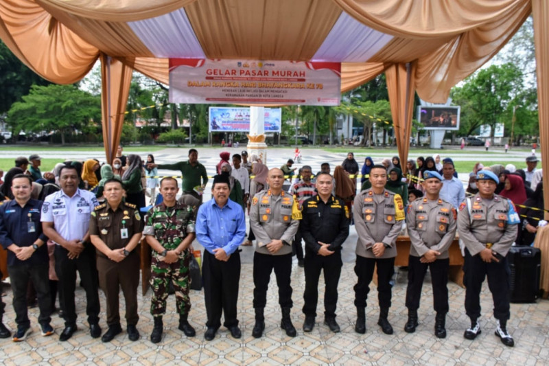 Gelar Pangan Murah Polres Langsa bekerjasama dengan Pemerintah Kota Langsa melalui Dinas Pangan, Pertanian, Kelautan dan Perikanan, Perum Bulog Cabang Langsa.