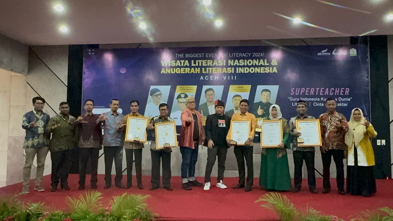 BANDA ACEH – Penjabat (Pj). Walikota Langsa Syaridin S.Pd., M.Pd dan Kepala Dinas Pendidikan dan Kebudayaan Kota Langsa, Dra. Suhartini,M.Pd menerima penghargaan Anugerah Literasi Indonesia dari Forum Indonesia Menulis atas dedikasinya dan peran aktif dalam upaya peningkatan literasi dan pendidikan melalui event Wisata Literasi Nasional.