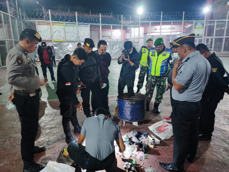 “Dari hasil penggeledahan tidak ditemukan barang terlarang, hanya ditemukan barang yang tidak terpakai seperti korek api gas, sendok, Kartu Joker, tali, sikat gigi yang di pertajam yang berpotensi bisa menimbulkan gangguan keamanan dan ketertiban, selanjutnya hasil razia langsung dimusnahkan dengan cara dibakar,” kata Karutan.