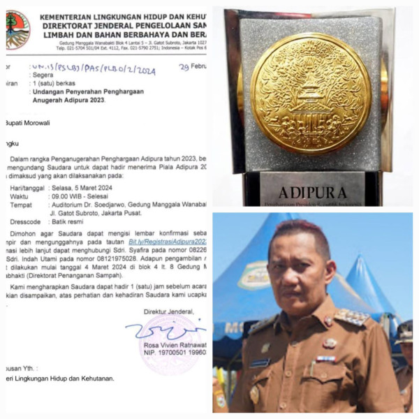 Surat undangan anugerah Adipura Morowali dan kota Palu itu ditanda tangani Direktur Jenderal Rosa Vivien Ratnawati sejak 29 Februari 2024.
