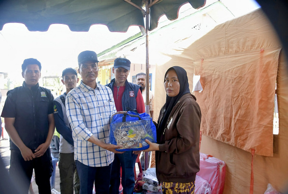 Paket bantuan sembako diserahkan langsung oleh Pj Walikota Langsa Dr. Syaridin, S.Pd., M.Pd didampingi Kepala BPBD Kota Langsa, Nursal Syahputra S.STP, Kadis. Sosial Kota Langsa, Armia SP, Sekretaris Baitul Mal Kota Langsa, Juwahir SE, dan Pj. Geuchik Sungai Pauh Pusaka.