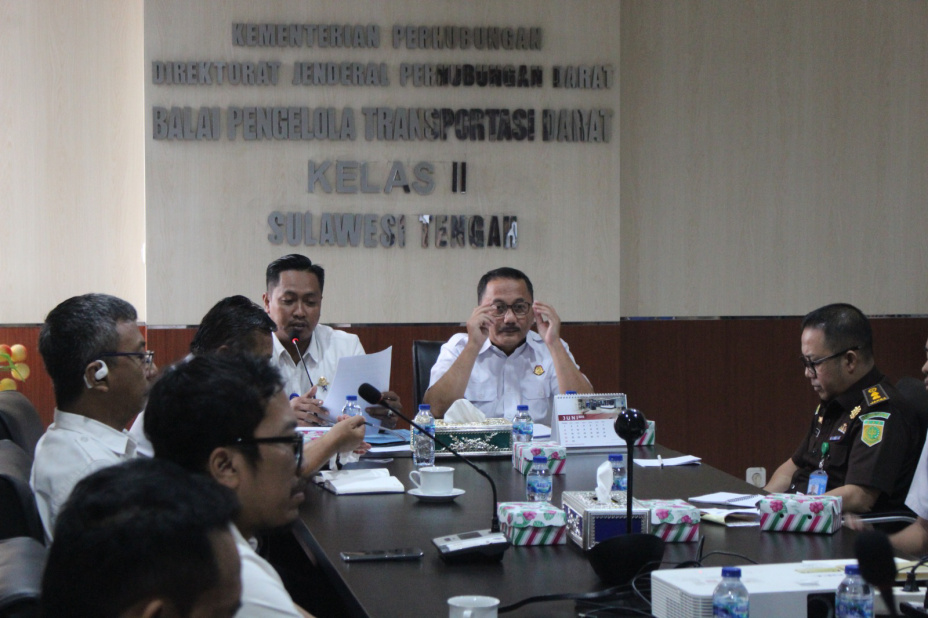 PALU – Asisten Intelijen (Asintel) Kejaksaan Tinggi (Kejati) Sulawesi Tengah Ardi Surianto, didampingi Kepala Seksi Sosial Budaya Kemasyarakatan Firdaus M. Zein, serta Kasi Penkum La Ode Abd. Sofian, menghadiri rapat yang diselenggarakan oleh Balai Pengelola Transportasi Darat (BPTD) Kelas II Sulawesi Tengah, Kementerian Perhubungan Direktorat Jenderal Perhubungan Darat, bertempat di Ruang Rapat BPTD Kelas II Sulawesi Tengah, Jl. Sekunder No. 1, Kota Palu, Rabu 16/7/2025.