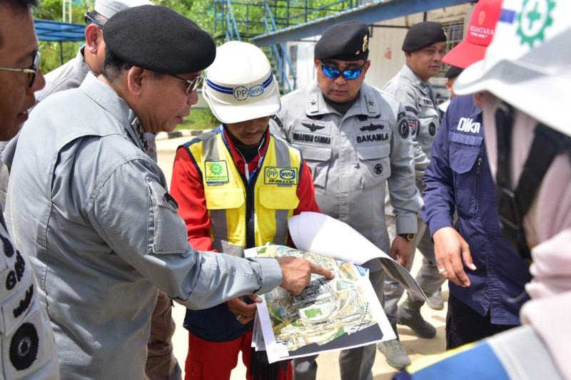 PENAJAM PASER UTARA – Kepala Bakamla RI Laksdya TNI Dr. Irvansyah, S.H., M. Tr. Opsla melakukan peninjauan lahan lokasi Kantor Bakamla RI pada rencana tata ruang di kawasan Ibu Kota Negara (IKN) Nusantara, Kalimantan Timur, Kamis (25/1/2024).