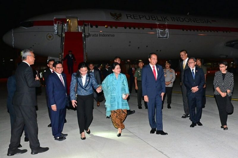 JAKARTA – Usai menghadiri rangkaian Konferensi Tingkat Tinggi (KTT) G20 India, Presiden Joko Widodo dan Ibu Iriana Joko Widodo bertolak kembali ke Tanah Air melalui Air Force Station (AFS) Palam, New Delhi, India, pada Minggu (10/9/2023) sore.