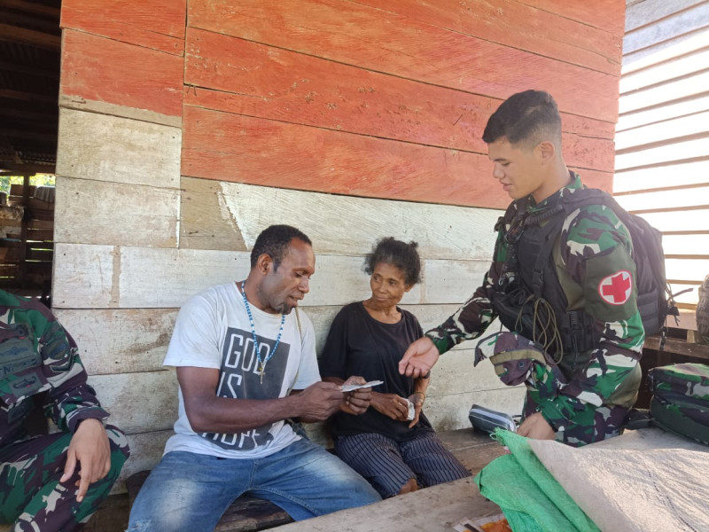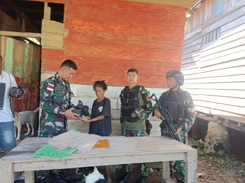 KABUPATEN KEEROM – Dalam Bulan Suci Ramadhan Satgas Yonif 122/TS Melaksanakan door to door dengan membagikan Sembako dan pelayanan kesehatan secara gratis kepada warga yang bertempat di kampung Uskuar , Distrik Mannem, Kabupaten Keerom, Sabtu (30-03-2024).