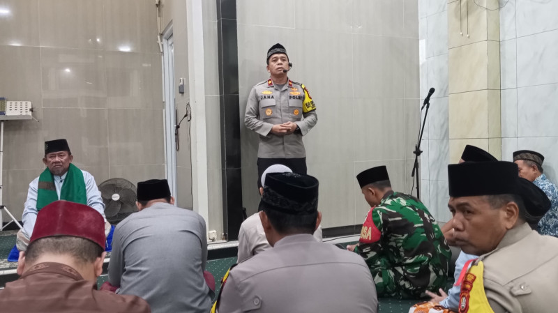 Kapolsek Kalideres menyampaikan informasi terkait larangan kampanye di tempat ibadah, money politik, serta kampanye di kantor pemerintah.