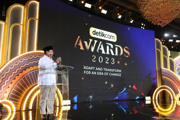 JAKARTA – Menteri Pertahanan Prabowo Subianto mendapat penghargaan kategori “Tokoh Peneguh Kedaulatan Negara” pada acara detikcom Awards 2023 di Jakarta, Kamis (21/9/2023).