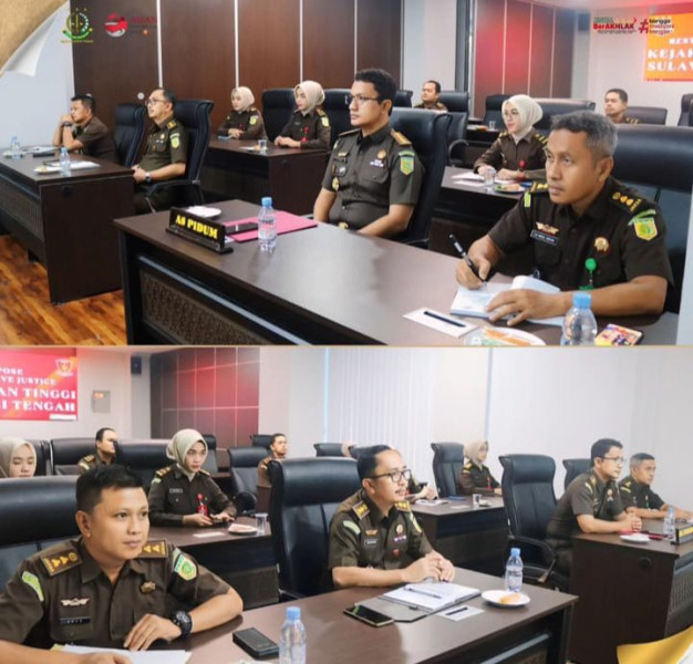 Sementara itu, diruang vidcom Kejati Sulteng turut hadir Asisten Pidana Umum (Aspidum) Kejati Sulteng Fitrah, SH, MH, Koordinator Mahmuddin, SH, MH, Kepala Seksi Oharda Agus, SH, MH, serta Kepala Seksi Penerangan Hukum (Kasipenkum) Laode Abdul Sofyan.