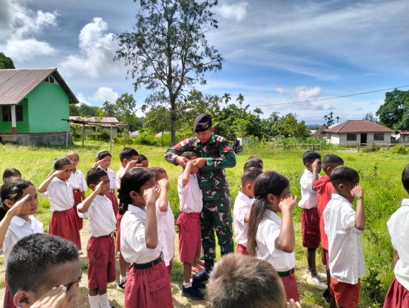 EBAN, NTT – Naga Karimata Smart Car Satgas Yonkav 6/ Naga Karimata bangun semangat belajar para siswa yang ada di SD Katolik Eban 2, Desa Eban, Kec. Miomaffo Barat, Kab.TTU, Prov. NTT. (1/2/24)