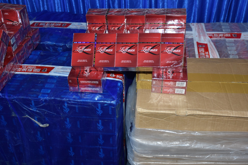“Barang hasil penindakan ini mencakup 639.400 batang rokok H1 Mild Gold tampa dilekati pita cukai dan 300.000 batang roko Luffman tampa dilekati pita cukai sehingga total hasil penindakan sebanyak 939.400 batang rokok ilegal dengan nilai barang sebesar Rp. 2.2 miliar lebih dan di perkirakan merugikan negara sebesar Rp. 1.4 miliar lebih,” jelasnya.
