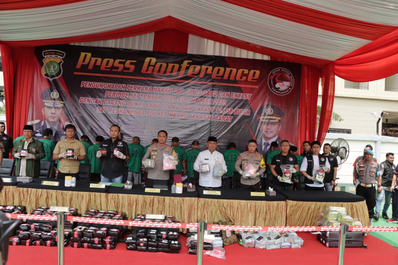 Kapolres Metro Jakarta Barat Kombes Pol M Syahduddi didampingi kasatres narkoba Akbp Indrawienny panjiyoga mengatakan, Hasil Ungkap ini kami mengamankan sebanyak 20 orang tersangka jaringan narkoba internasional.