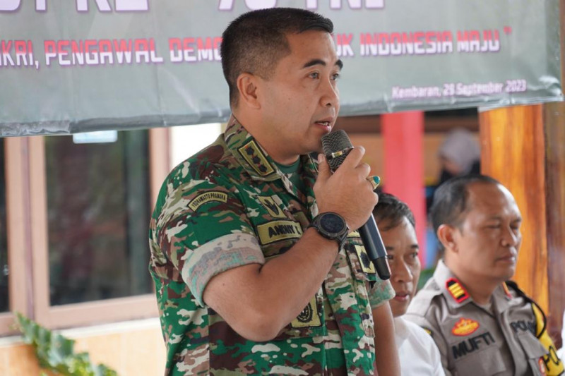 “Ikatan erat TNI dan rakyat merupakan modal yang kuat untuk melaksanakan tugas dalam rangka kita membela NKRI. NKRI dibela tidak hanya oleh pertempuran fisik atau kegiatan fisik, melainkan juga banyak kegiatan-kegiatan lain yang sifatnya bukan fisik saja, namun juga rasa cinta kita, rasa kita ingin membela negara kita dengan kegiatan-kegiatan yang kita laksanakan sehari-hari dimana kita selalu menempatkan negara kita atau kepentingan keamanan negara kita menjadi prioritas,” jelasnya.