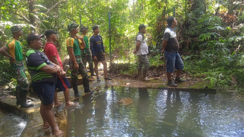 KALBAR – Karya Bakti TNI melalui gotong royong dan kerja bakti dalam rangka memperbaiki bendungan sungai dengan membersihkan tumpukan sampah dan ranting serta melakukan penambahan/pengecoran dilakukan di Desa Perumbang Kecamatan Badau Kabupaten Kapuas Hulu, Kalimantan Barat, Minggu (03/12/2023).