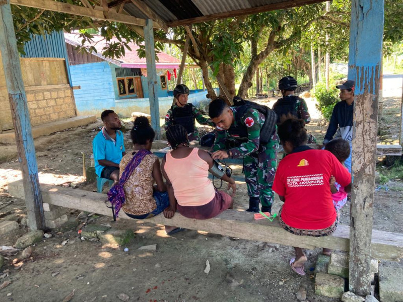 Wujud Tingkat Kepedulian Satgas Yonif 122/TS Berikan Pelayanan Kesehatan di Desa Binaan Kampung Mosso, Papua