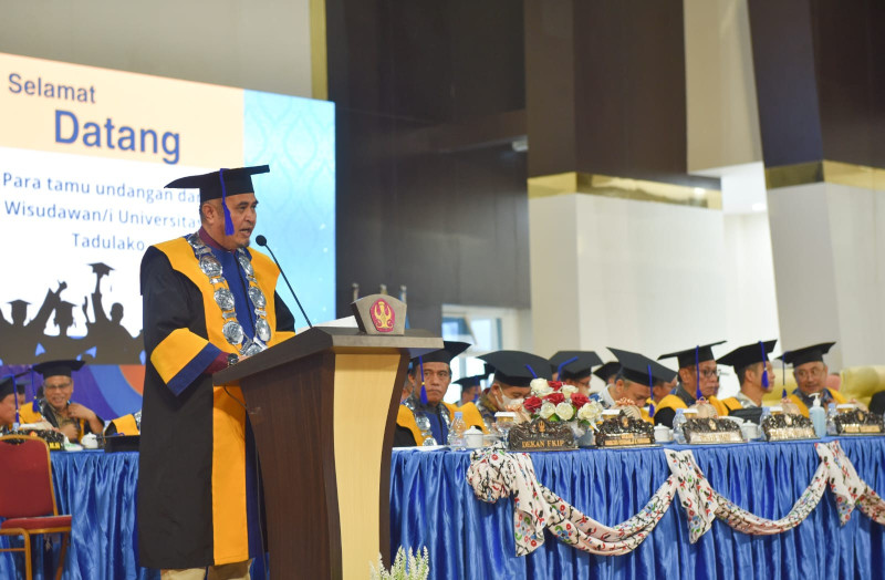 Dalam momentum yang berbahagia itu, Gubernur Rusdy Mastura mengucapkan selamat kepada para lulusan yang telah menyelesaikan studi di Universitas Tadulako.