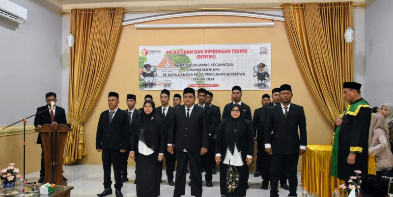 KOTA LANGSA – Panitia Pengawas Pemilihan (Panwaslih) Kota Langsa melantik 15 Anggota Panitia Pengawas Pemilihan Kecamatan (Panwaslihcam) se-Kota Langsa, di Aula Convention Tirta Vitra Raya, Rabu (14/08/2024).