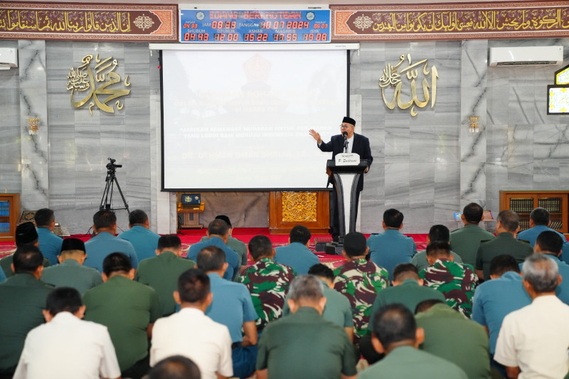 JAKARTA – Markas Besar Tentara Nasional Indonesia (Mabes TNI) menggelar kegiatan ceramah rohani dalam rangka memperingati Tahun Baru Islam 1446 H/2024 M bertempat di Masjid Panglima Soedirman Mabes TNI, Cilangkap, Jakarta Timur, Rabu (10/7/2024).