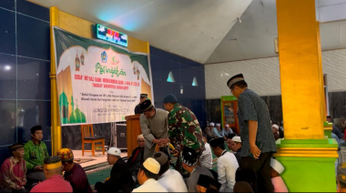 Dansatgas Yonif 641/Bru Letkol Inf Aprianda S.H., M.Sc., beserta personel Pos Kotis Walesi menghadiri acara memperingati Isra Mi’raj Nabi Muhammad Saw 1446 Hijriyah yang bertema ‘’Melalui Peringatan Isra Mi’raj Nabi Muhammad SAW, Bersama Kita Eratkan Ukhuwah Islamiah Dan Peningkatan Ibadah Serta Pelayanan Kepada Umat.’’
